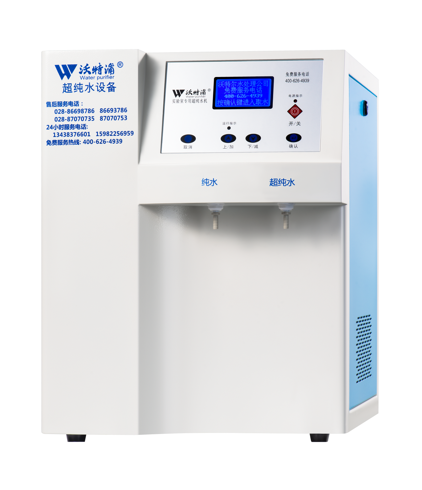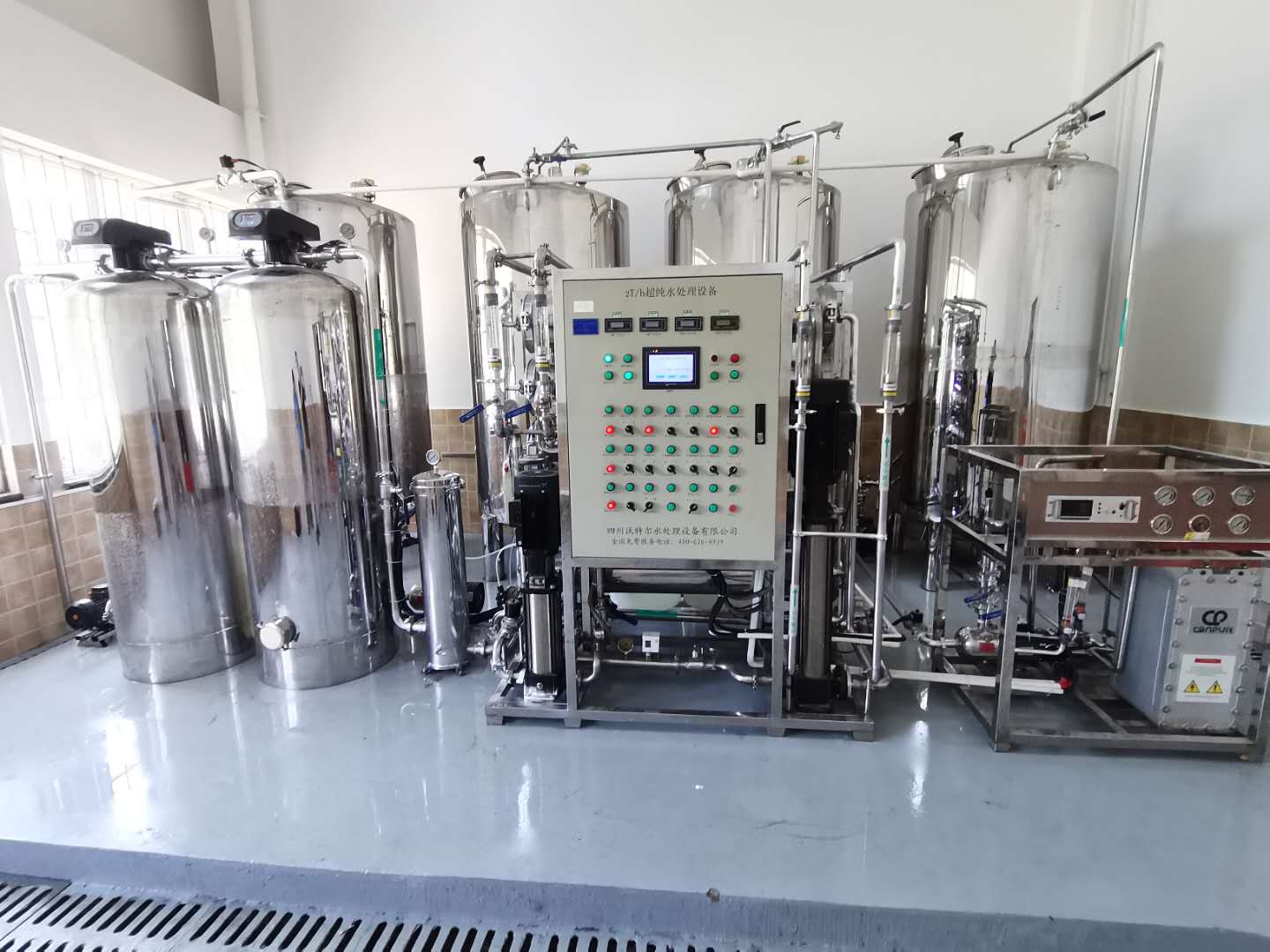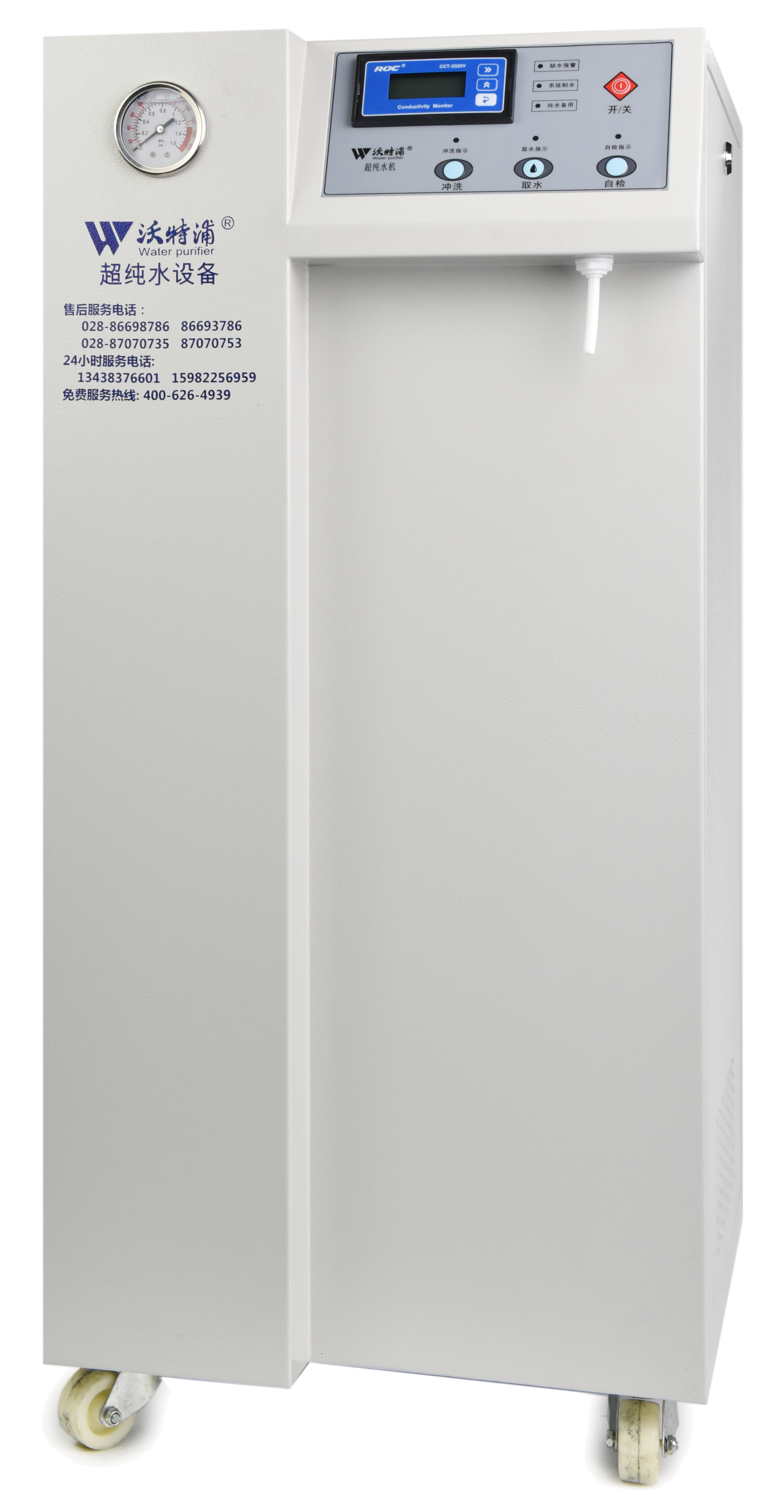 采用雙波長(zhǎng)紫外消解系統(tǒng),除熱源超濾膜組件,采用進(jìn)口離子交換樹(shù)脂過(guò)濾,使超純水能滿足各種實(shí)驗(yàn)要求。
